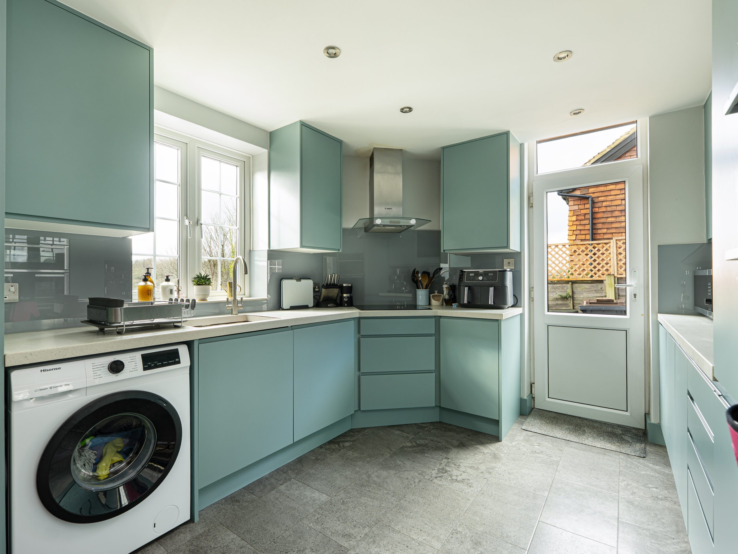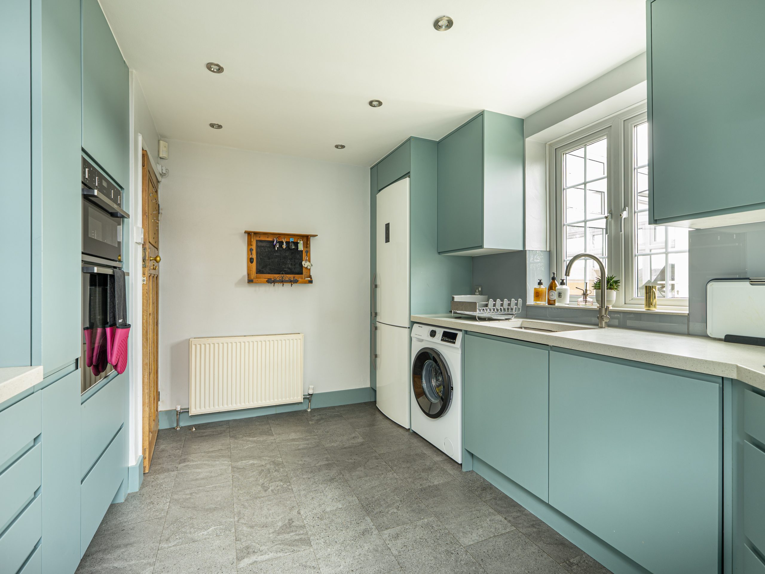 From the outside, it looks fairly traditional, but once inside, the space becomes clear. The ground floor provides two separate reception rooms, giving flexibility for family living and entertaining. The dining room flows naturally into the conservatory, which benefits from the elevated position and open outlook across the rear garden. The kitchen has been refurbished and offers ample worktop space, integrated appliances, and direct access to the rear garden. A downstairs WC completes the ground floor.
