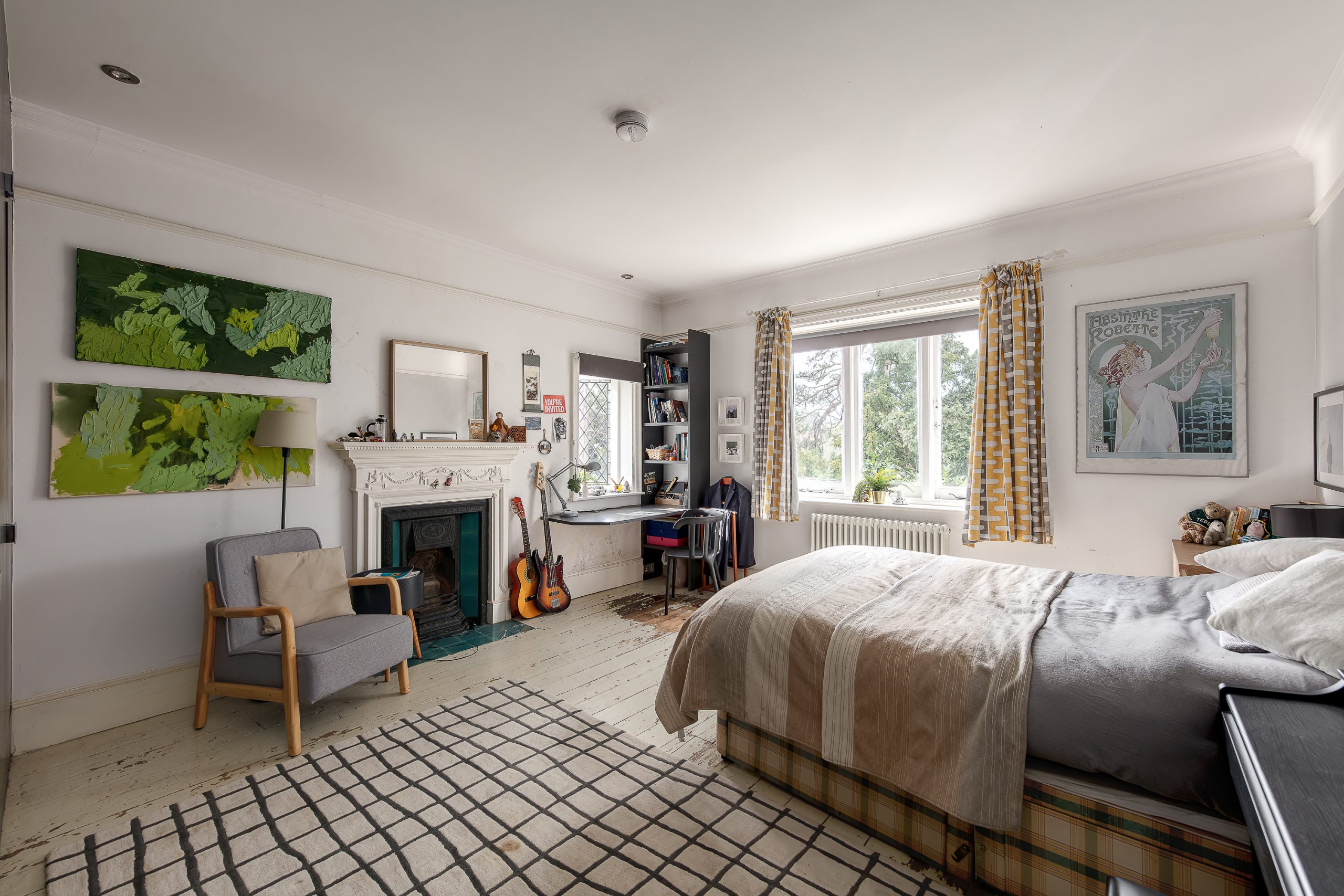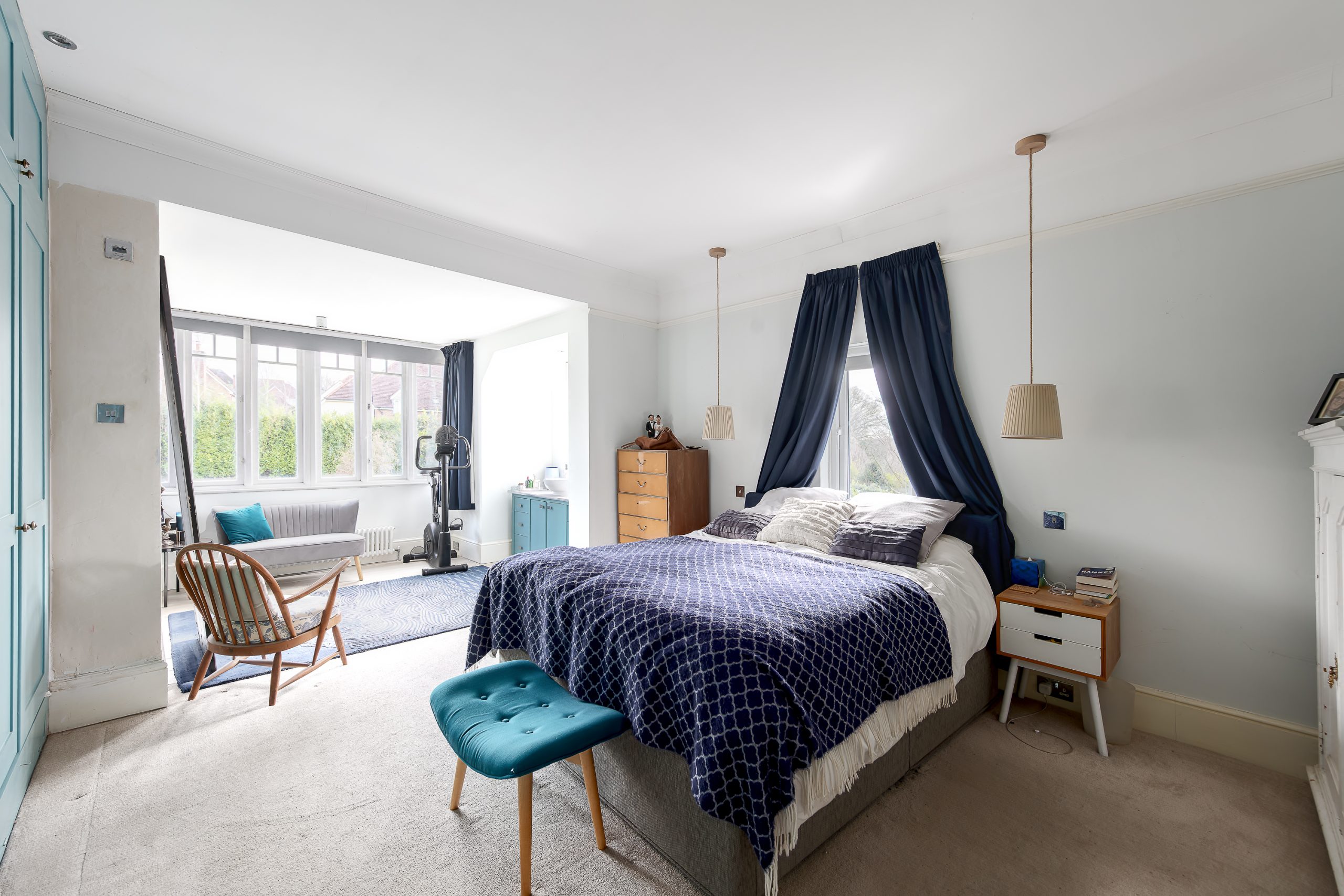 Upstairs, the first floor provides five generous double bedrooms. Two of the bedrooms benefit from en-suite bathrooms, while a well-appointed family bathroom serves the remaining rooms. As with the ground floor, the rooms are well-proportioned and filled with natural light, some with views across the valley, continuing the sense of space that runs throughout the house.