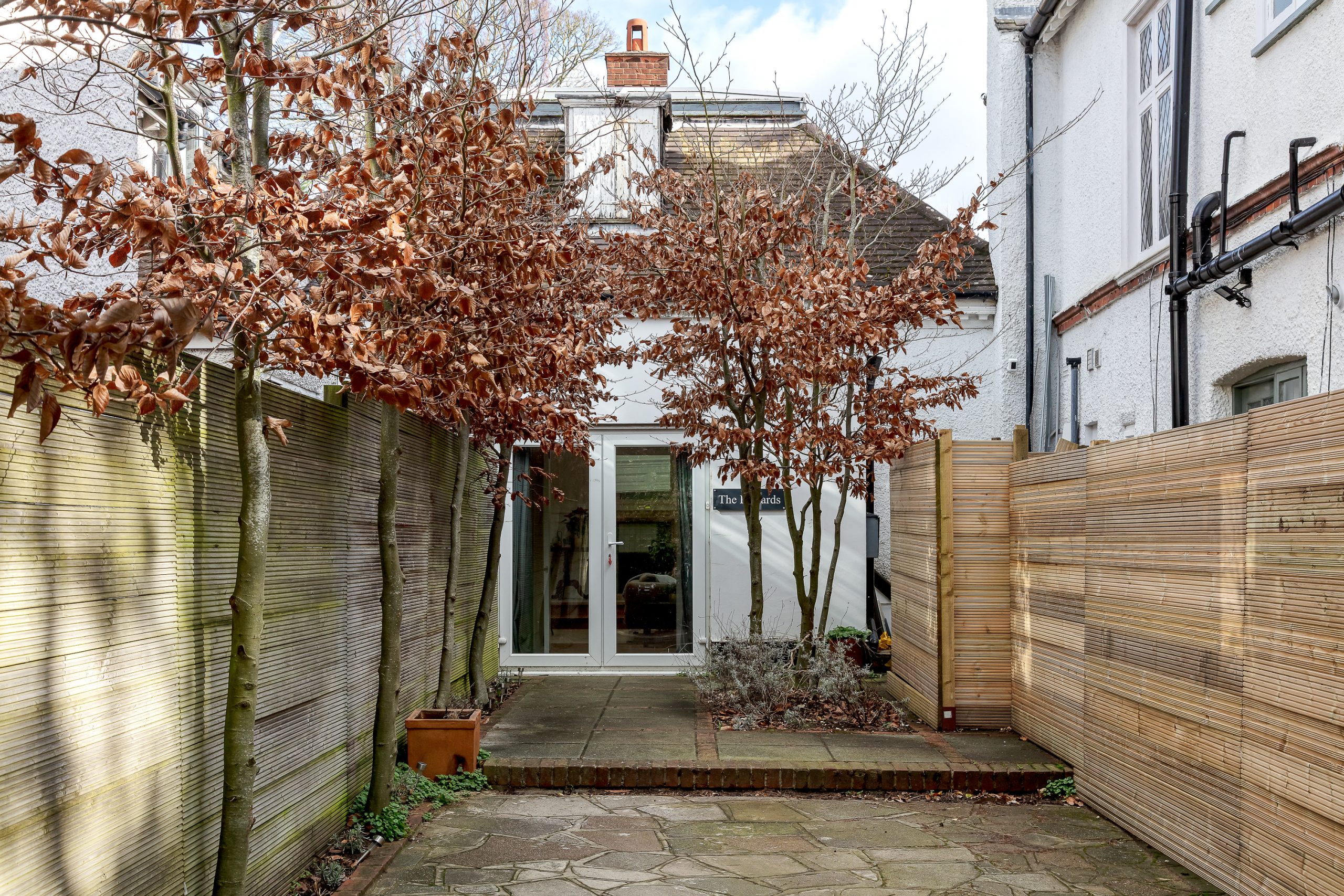 The property sits within sizeable, level grounds that are unusually wide for the area and offer a high degree of privacy. The driveway provides off-street parking for several cars, an increasingly valuable feature for homes of this age and character.