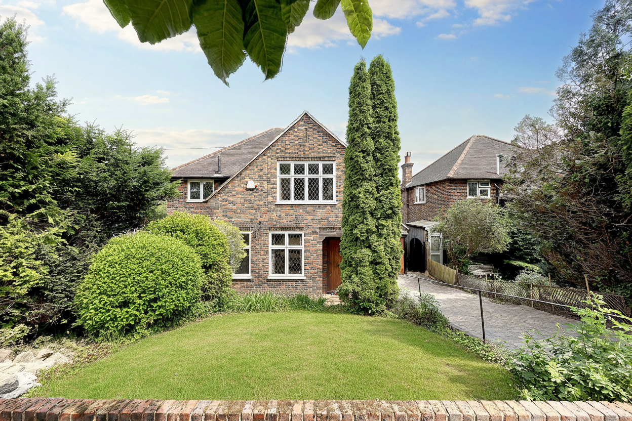 This handsome, detached four-bedroom home sits proudly on a wide plot, with a driveway, garage, and a beautifully landscaped garden with views over Purley Downs Golf Course.
